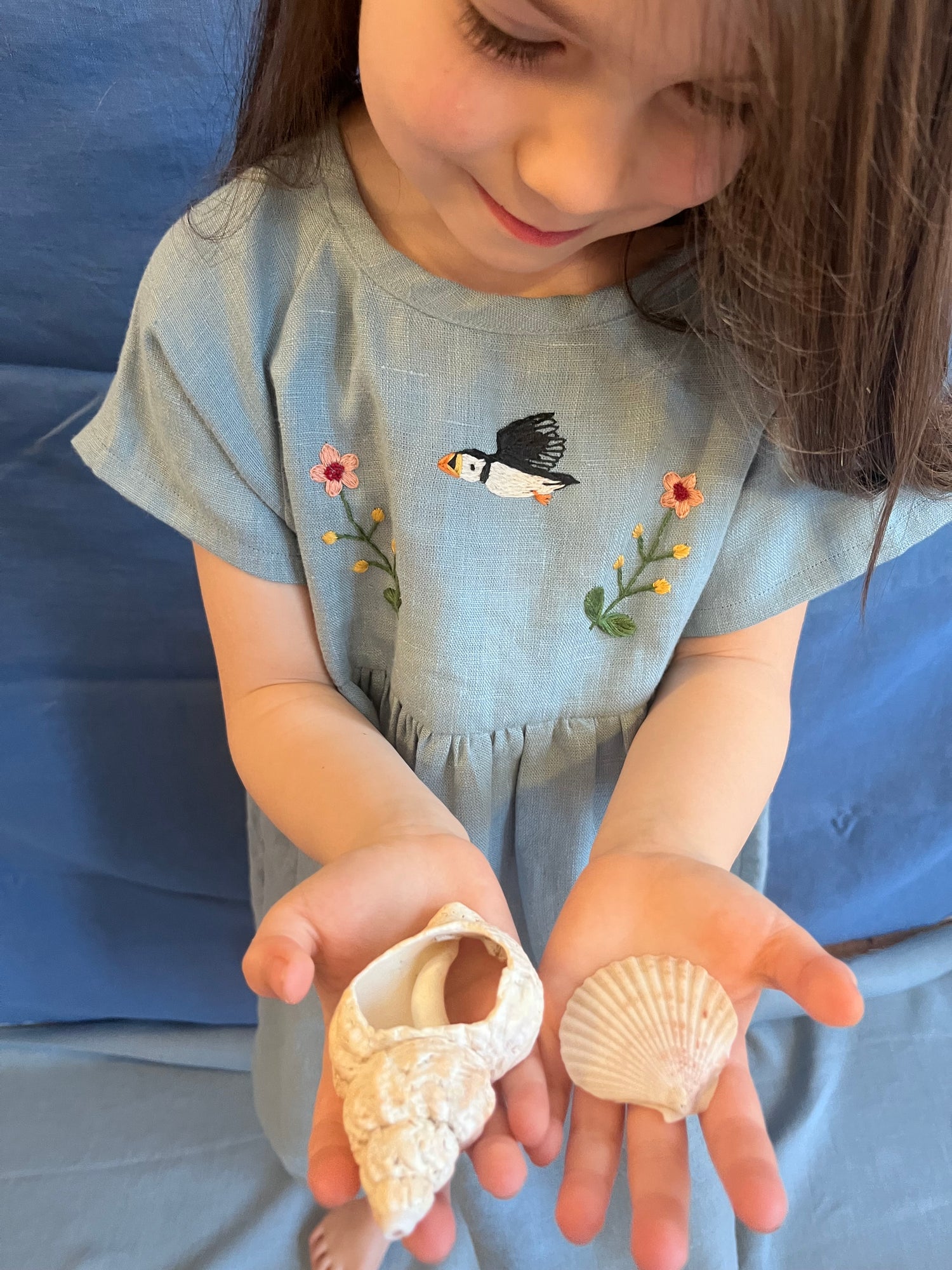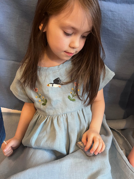 As small as you are pairs exquisite artisan hand embroidery with beautiful shaped clothing for small people, all made in natural fibres. All pieces are designed and created in Glasgow by Laura in her home studio.